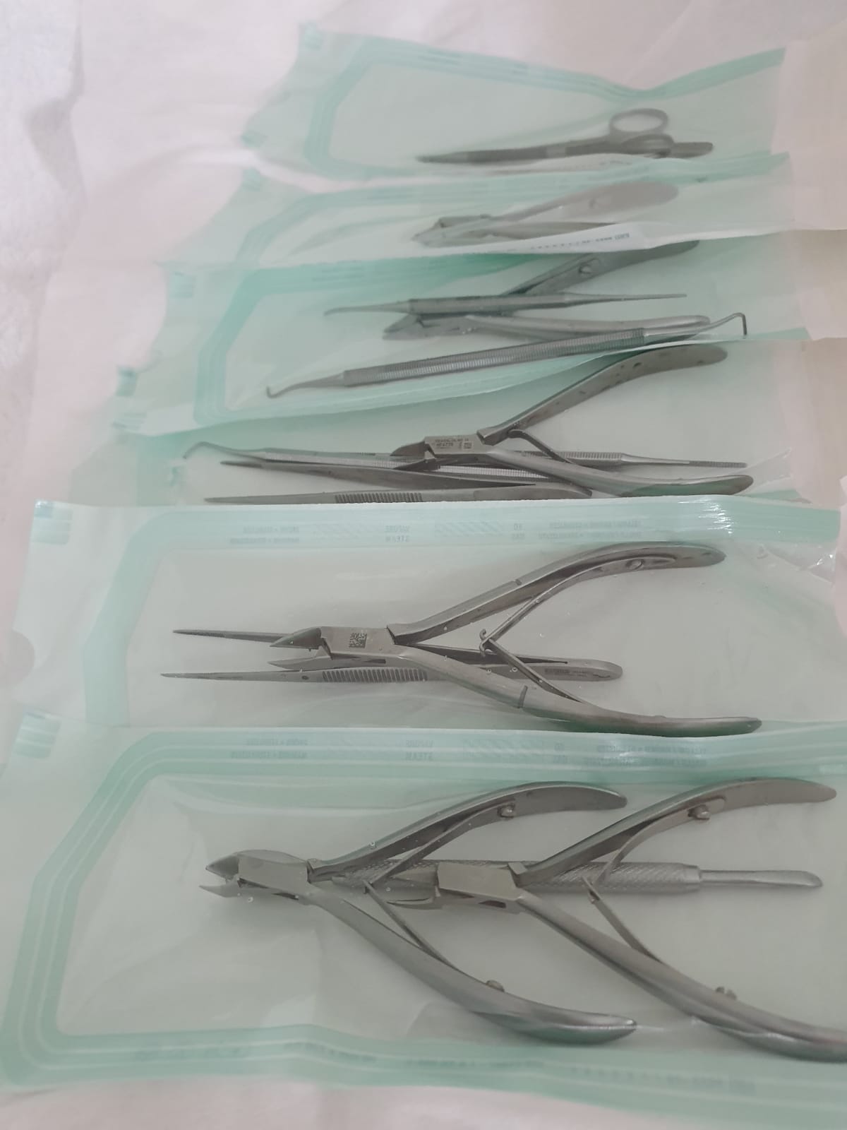 Das saubere Werkzeug wird nun in separate Pakete verpackt.